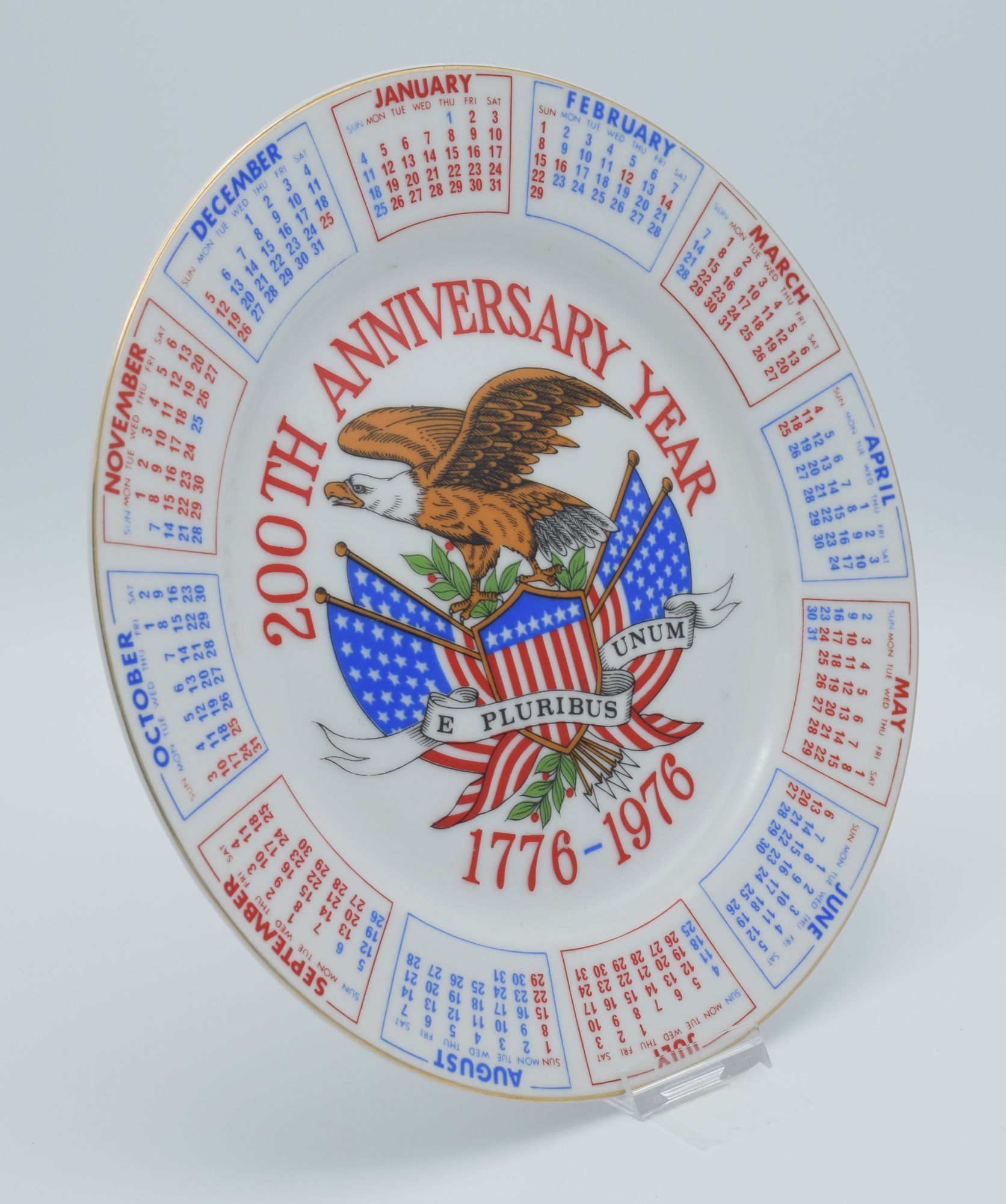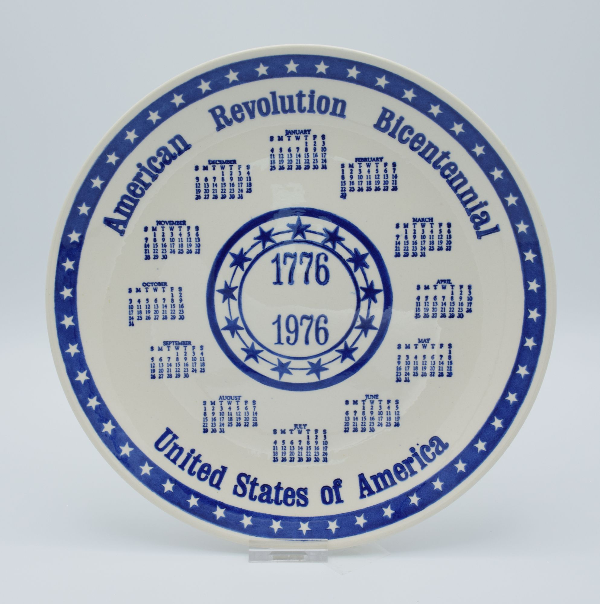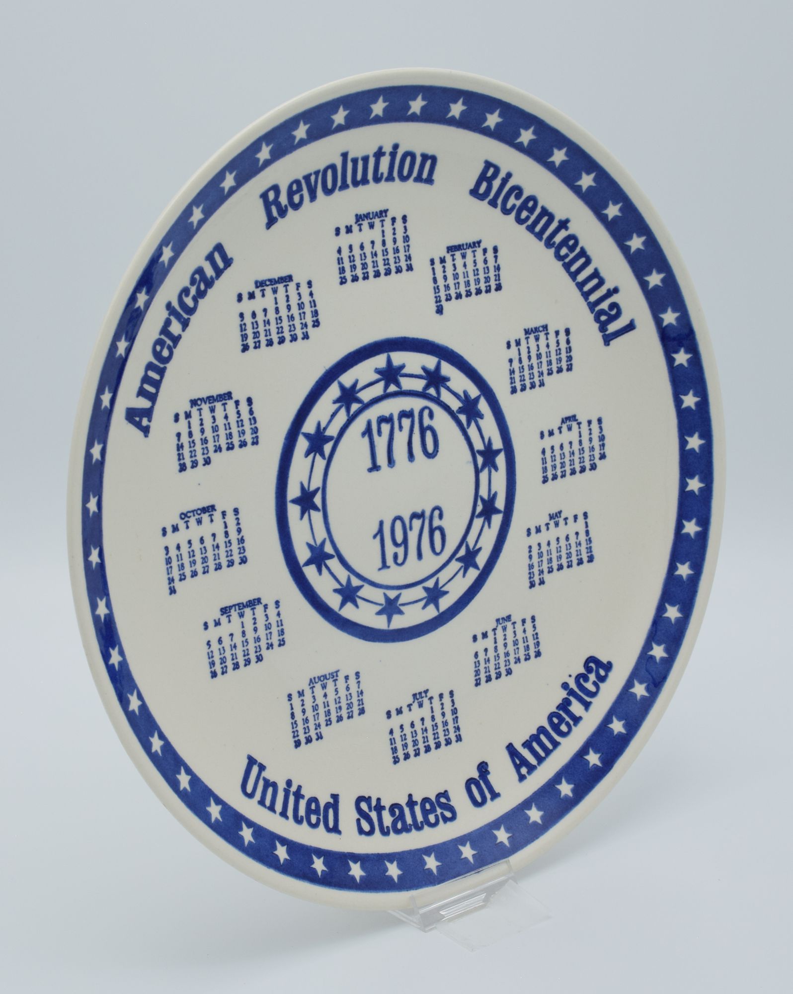 This blue-on-white stoneware plate features not much else besides the annual calendar. Black-on-white and green-on-white versions were also produced.
