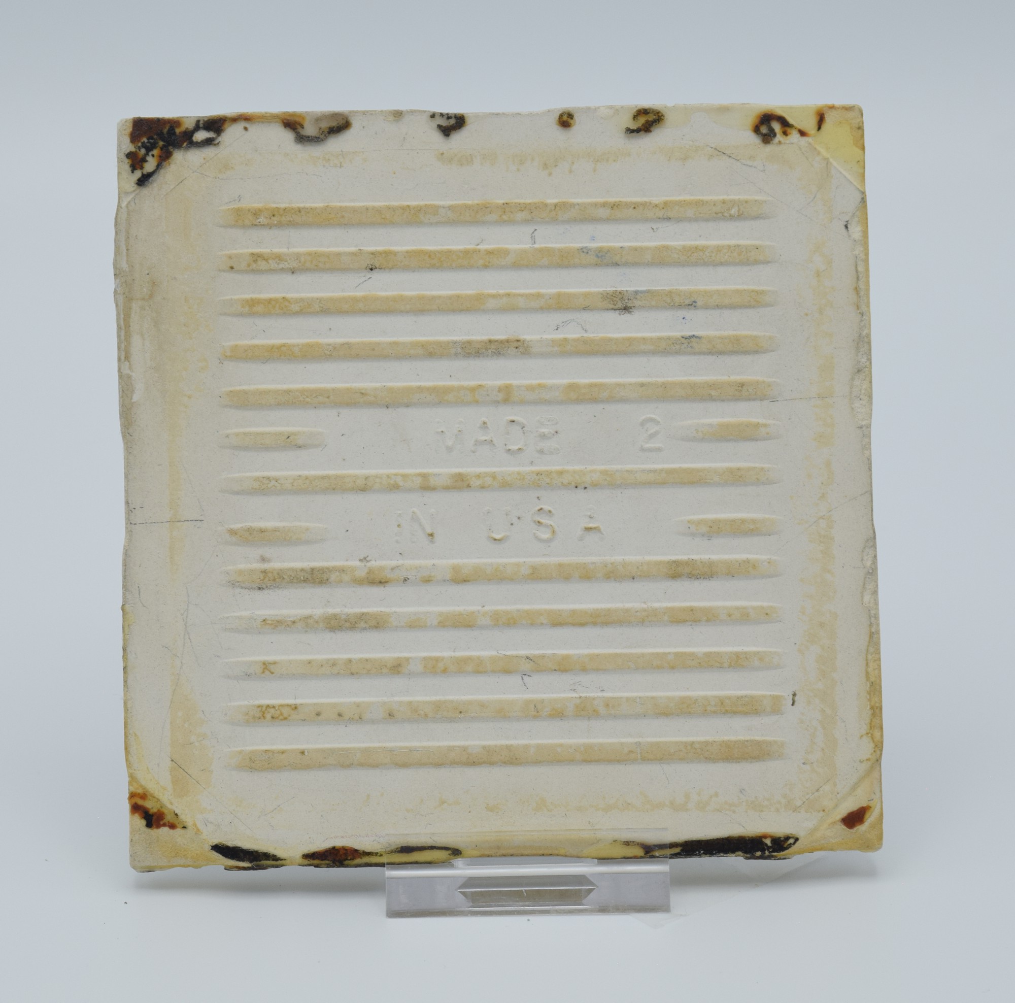 While this tile appears to have actually been attached in an installation, other collections that include this tile show markings on the back consistent with a drink coaster or trivet.
