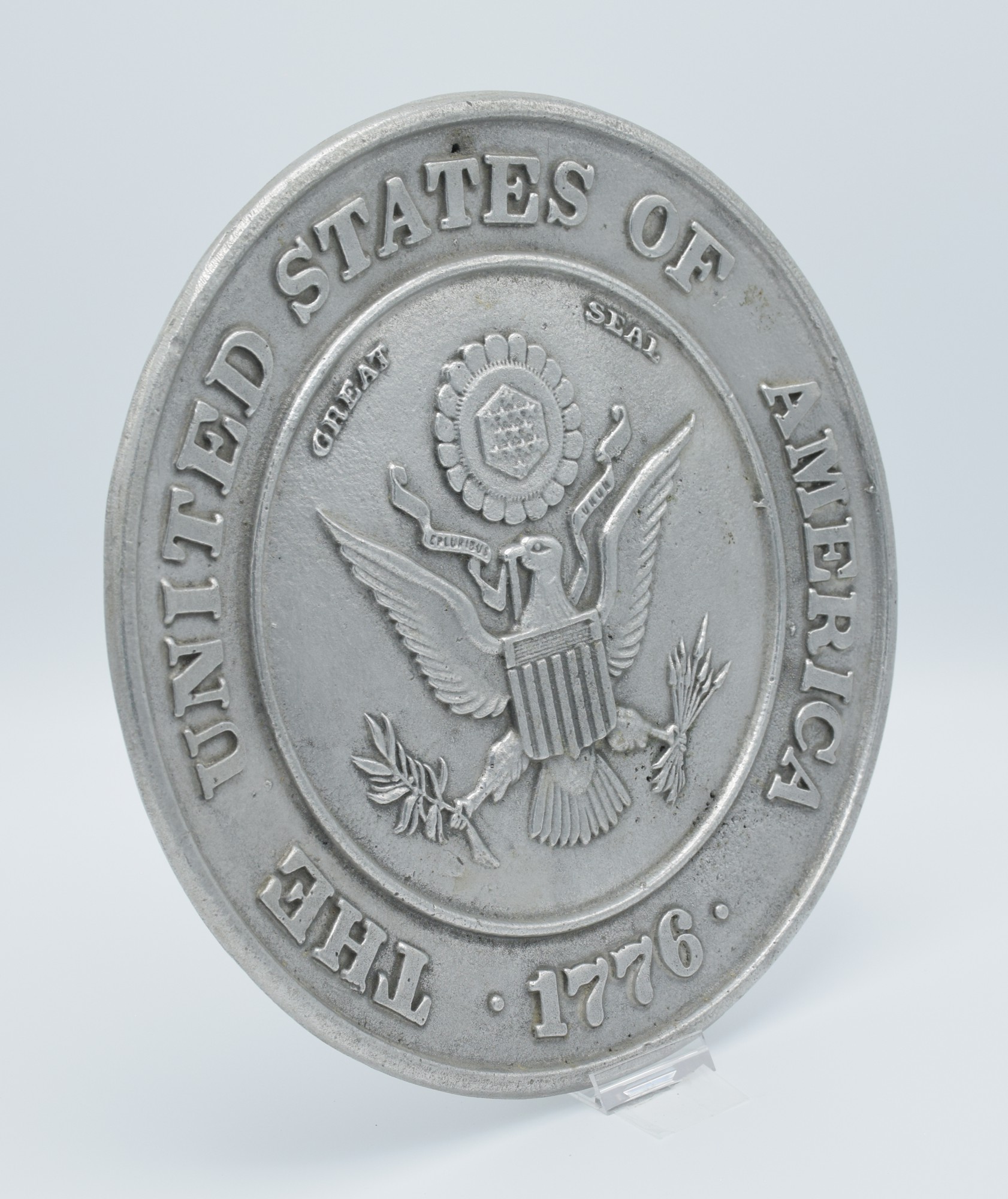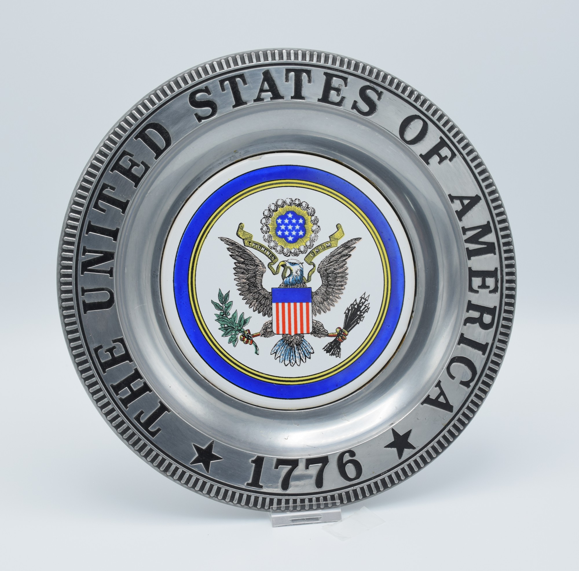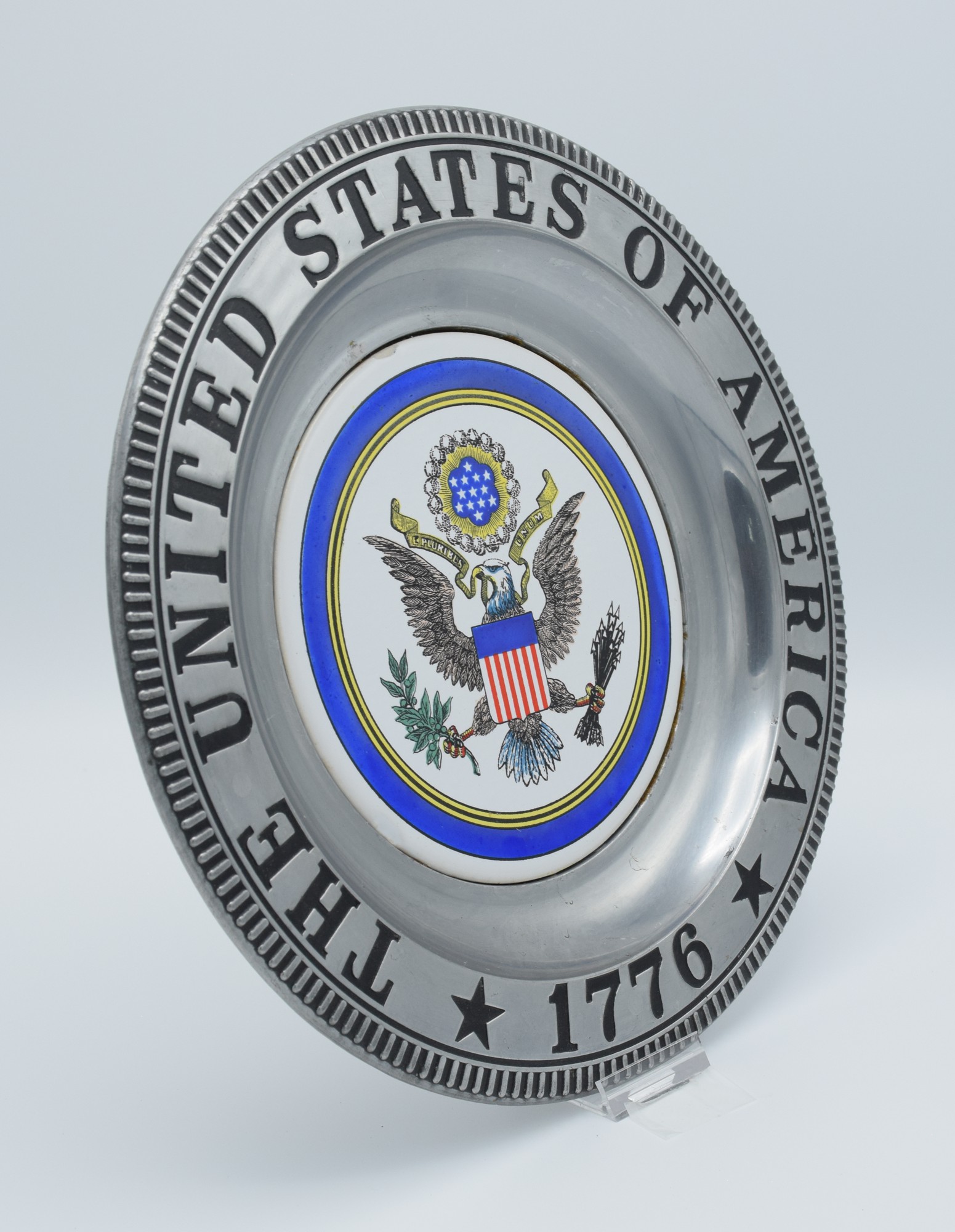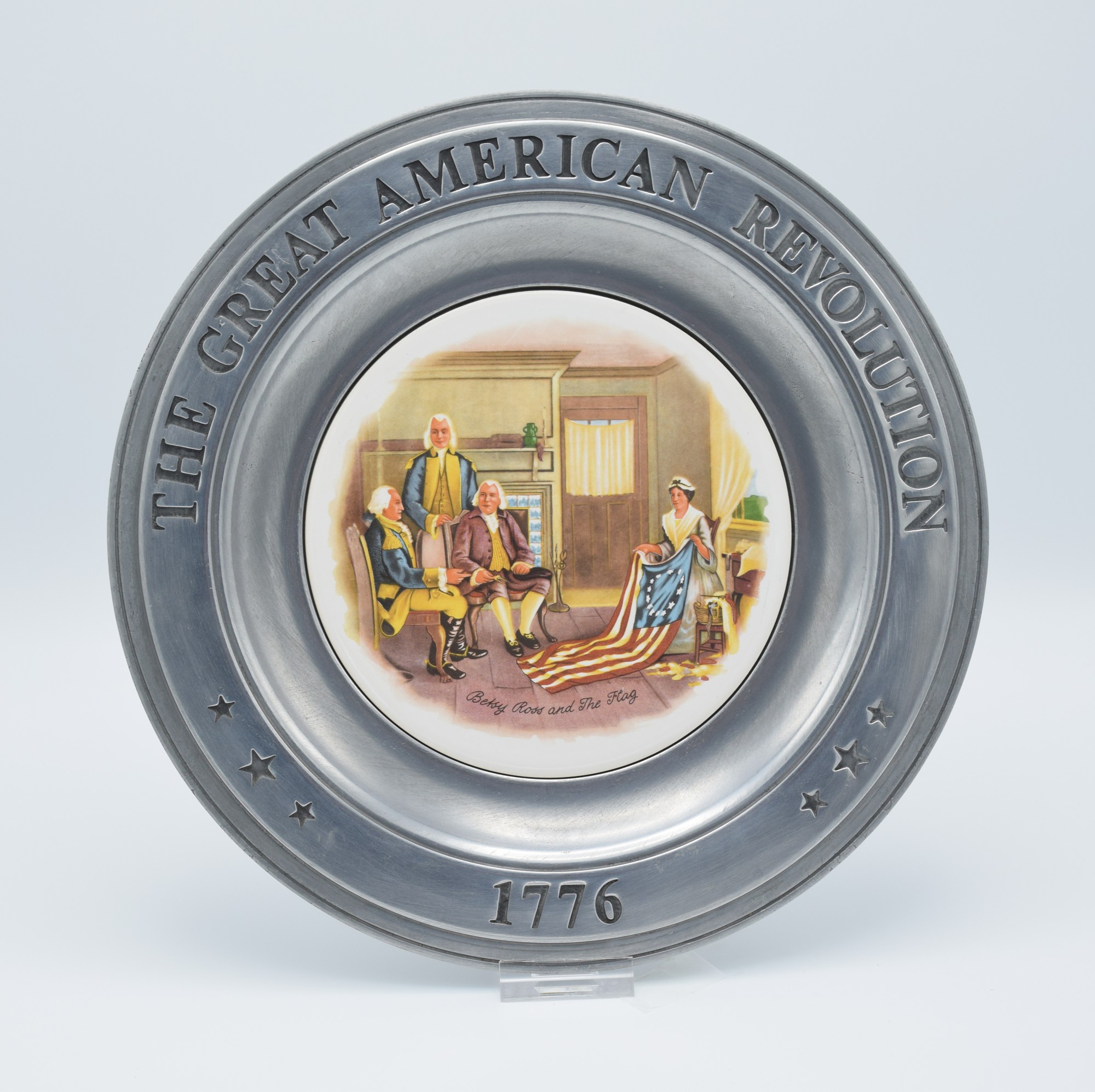 These seven plates are actually part of a “Special Edition Series” nine-plate set issued between 1975 and 1976. Most collections found online have only six (or fewer) of the total. There are numerous initials on all plates, and the producer is Williamsport Foundry. The plates depict several of the most famous patriotic art works: