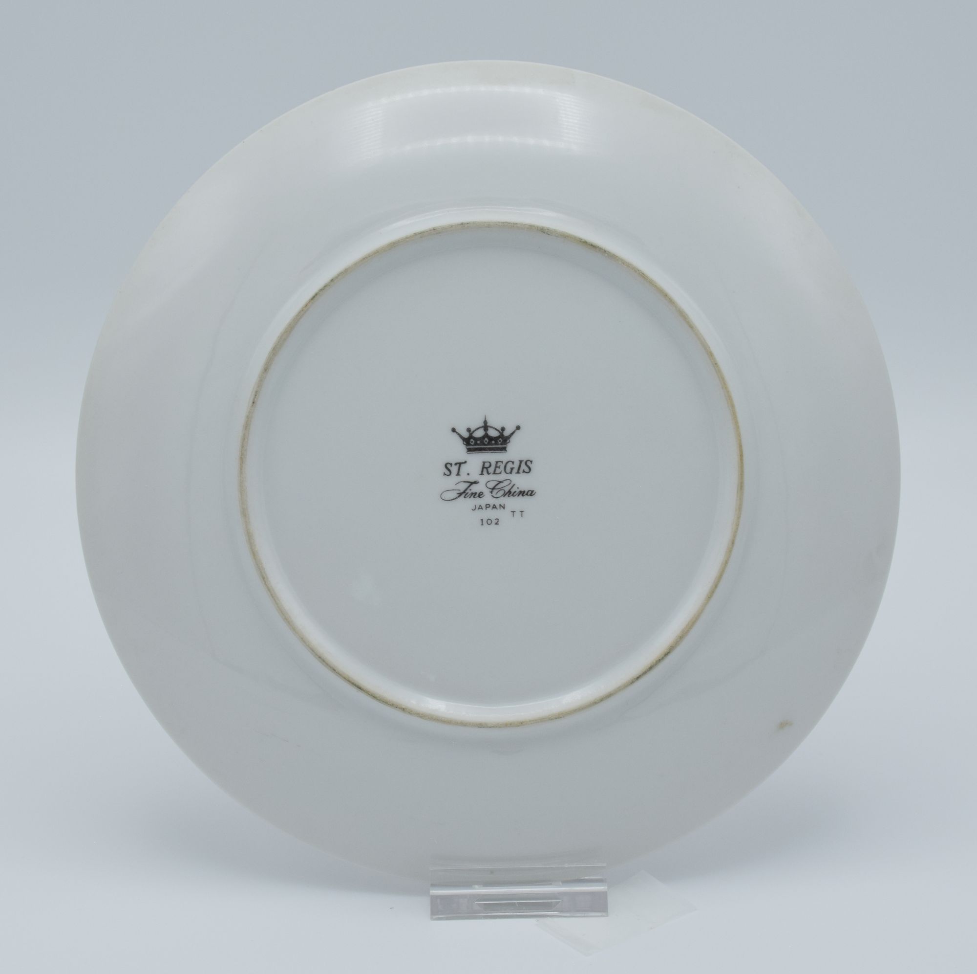 This gold-rimmed china plate features a colorful liberty bell and flags.